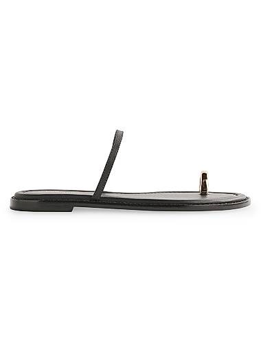 Шлепанцы Cassandra от Reformation выполнены из мягкой кожи и имеют стильный ремешок с золотистым ободком вокруг пальца.