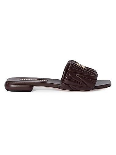 Кожаные слайды Miu Miu Matelasse Nappa с металлическим логотипом и кожаной подошвой