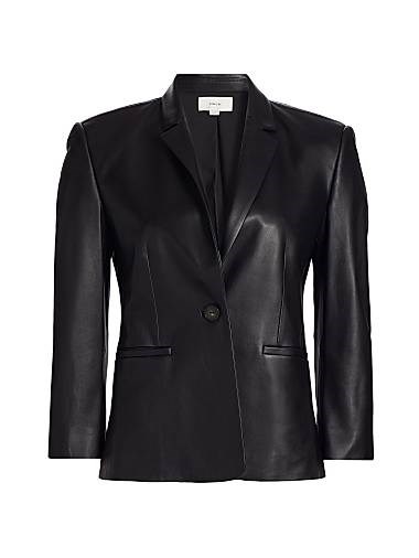 Кожаный укороченный блейзер из мягкой овечьей кожи с лацканами и однокнопочной застежкой от Vince