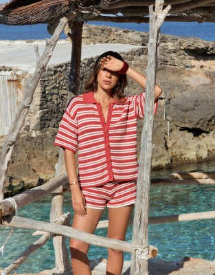 Красно-белая летняя хлопковая рубашка в полоску 4th &, Reckless с воротником и пуговицами, коллаборация с Luana Barron