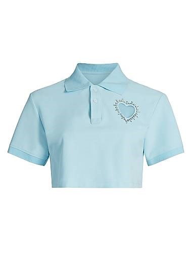 Эта кроп-футболка из смеси хлопка и полиэстера обладает уникальным дизайном с кристаллическим вырезом сердца на груди.