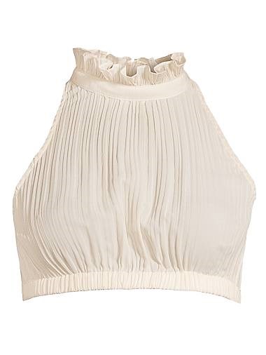 Кроп-топ с тонкими складками от Undra Celeste, стильный, с высоким воротником и без рукавов