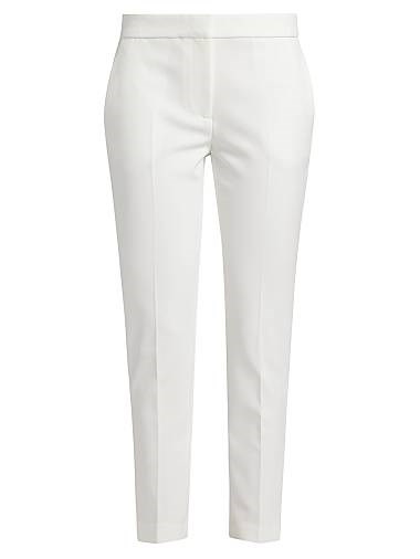 Брюки из технического кади имеют аккуратный пояс и изысканный фасон.