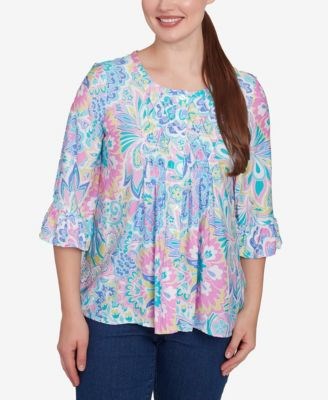 Кружевная блуза Ruby Rd. в утопическом стиле с пуговицами, 82% вискоза, 18% нейлон, размеры 1X-2X