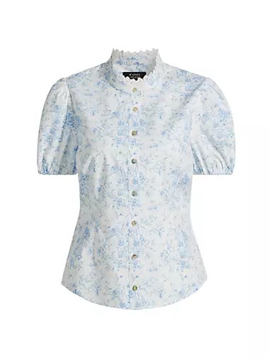 Эта рубашка If Only Studio с очаровательным рисунком в стиле toile отличается кружевной отделкой на воротнике-стойке.