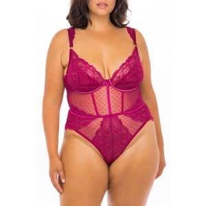 Дайте волю фантазии с этим соблазнительным кружевным боди, оформленным чашечками с подкладкой, идеально расположенной сеткой и вырезом на спине.