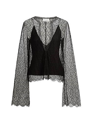Кружевной топ The Eloise от Brandon Maxwell с вырезом и длинными рукавами, 100% нейлон, подкладка 100% шелк