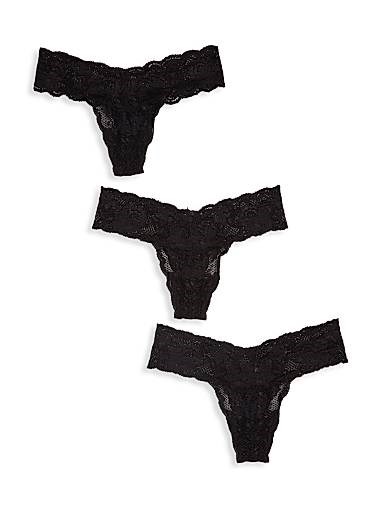Изготовлены из кружева, эти трусики-стринги имеют упаковку из трех штук.