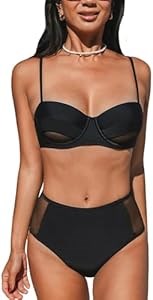 Дизайн: Черный купальник с элегантными деталями в ретро стиле! Сердечный вырез, сетчатые вставки и высокая талия создают эффектный, винтажный образ.