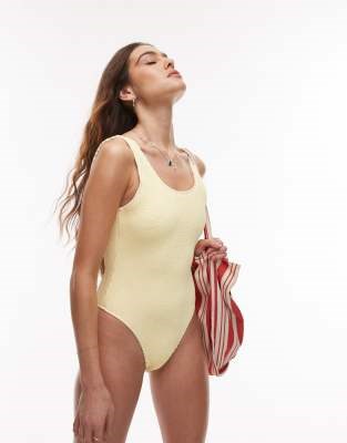 Купальник Topshop жёлтого цвета с простым дизайном, вырезом на спине и бразильским кроем