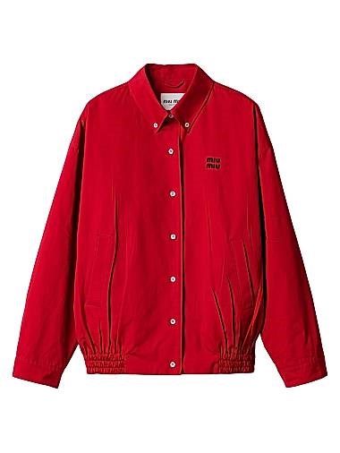 Куртка-блузон Miu Miu из плотного поплина с длинными рукавами, вышитым логотипом и эластичным подолом