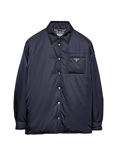 Куртка-блузон Re-Nylon от Prada с легким утеплителем и стильным воротником, сделанная из 100% переработанного полиамида