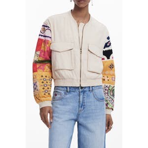 Куртка Desigual Mixed Media с цветными рукавами, молнией и эластичным поясом