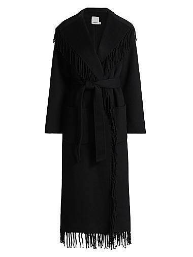 Куртка с бахромой Carrie от Simkhai выполнена из мягкой шерстяной смеси. Она имеет длинный силуэт и пояс для подчеркивания талии.