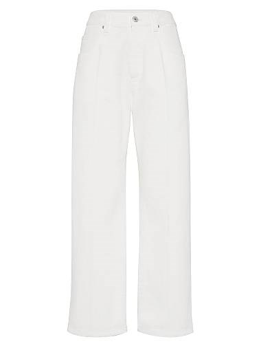 Квадратные брюки из окрашенного денима от Brunello Cucinelli с декором монили и карманами в современном стиле