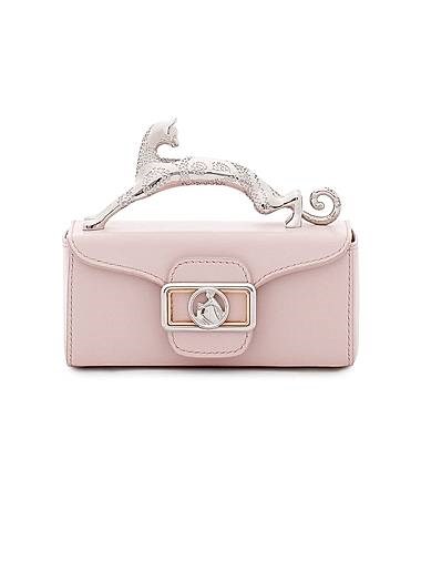 Lanvin Кожаная мини-сумочка Pencil Cat с кошачьей ручкой, съемным ремешком и замшевой отделкой
