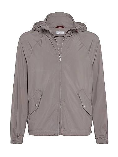 Легкая куртка с капюшоном из техно-ткани без подкладки от Brunello Cucinelli с молнией и регулируемым воротником