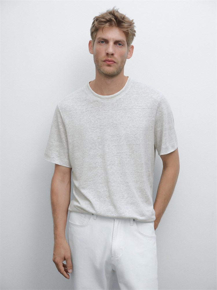 Футболка с короткими рукавами, выполненная из ткани смешанной с льном.