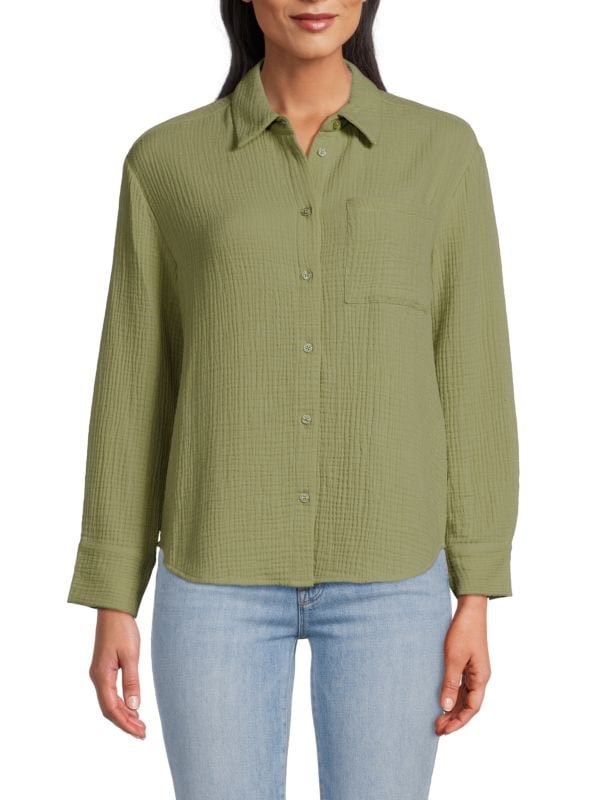 Лёгкая рубашка из хлопкового газа Saks Fifth Avenue с длинными рукавами и свободным кроем