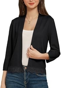 Легкий и стильный женский короткий кардиган с кружевной отделкой, 3/4 рукавами и открытым фронтом от Grace Karin, лето 2025