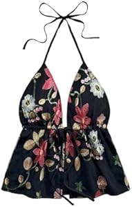 Цветочный принт, фиксированная завязка на шее, без рукавов, открытая спина, завязка спереди, идеально подходит для отпуска.