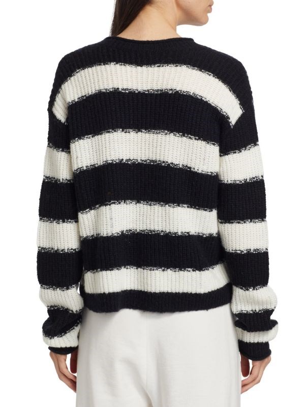 Лёгкий лонгслив из вязаного трикотажа с глубоким V-образным вырезом и полосками от ATM Anthony Thomas Melillo, 55% нейлон/45% шерсть