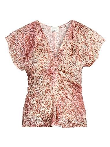 Лёгкий шёлковый топ Lonea от Isabel Marant с ярким принтом, V-образным вырезом и короткими рукавами