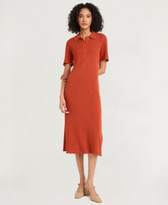 Легкое женское миди-платье Luxely с поло-воротником, приталенного силуэта и короткими рукавами