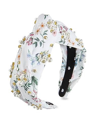Lele Sadoughi Ободок Marlene Liberty™ из тонкого хлопка с искусственным жемчугом и стеклянными кристаллами