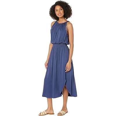 Летнее эковера-сатиновое миди-платье без рукавов с сборкой на талии от Bella Dahl