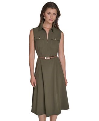 Элегантный тонкий пояс на талии придаёт этому классическому платью для поездок от Halston изысканный вид, подчеркивая его утилитарность.
