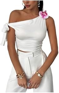 Летний асимметричный топ Verdusa на одно плечо с 3D цветами и завязкой, укороченный
