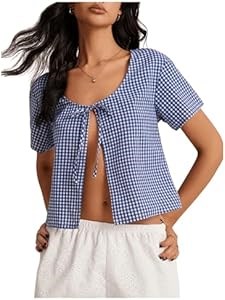 Летняя клетчатая блузка Floerns с коротким рукавом и завязками спереди, стильный топ для выхода