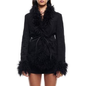 Lioness Пальто Oui Oui с искусственным мехом и V-образным вырезом, завязками и подкладкой.