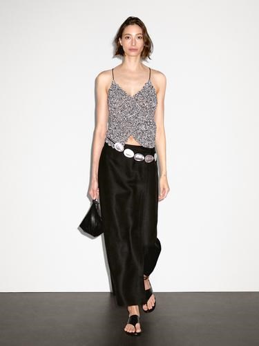 Льняная юбка-бриджи Massimo Dutti с удлиненным фасоном для создания стильного и удобного образа