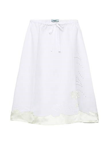 Льняная юбка-макси Prada с вышивкой, атласными акцентами и передней шнуровкой
