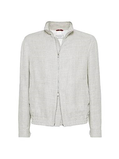 Льняной, шерстяной и шелковый бомбер Brunello Cucinelli с диагональным кроем, подкладкой и карманами