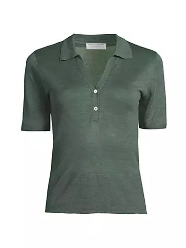 Поло свитер с короткими рукавами Majestic изготовлен из 100% льна и оформлен rib-knit отделкой.