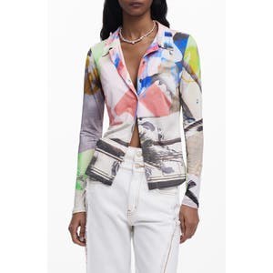 Лонгслив Desigual с абстрактным принтом на пуговицах, из 100% переработанного полиэстера