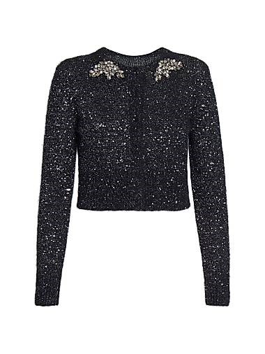 Изготовленный из роскошной смеси альпака, короткий кардиган Erdem украшен сверкающими пайетками и кристаллами на горловине.
