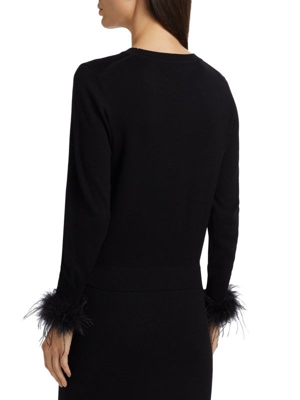 Лонгслив Tina от If Only Studio выполнен из 100% шерсти с оригинальной отделкой из перьев на манжетах.
