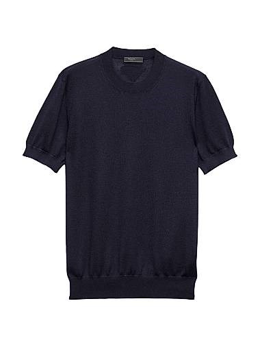 Лонгслив Prada из кашемира и шелка с узким силуэтом и объемным воротником, 70% кашемир, 30% шелк
