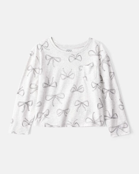 Лонгслив с принтом из бантиков для девочек от Carter',s - серый, удобный крой, карманная фурнитура