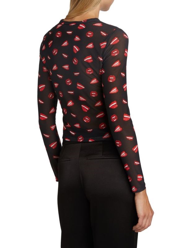 Лонгслив Delaina от Alice + Olivia выполнен из легкой сетки и оформлен игривым принтом.