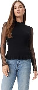 Лонгслив Sam Edelman с прозрачными плиссированными рукавами, 65% вискоза, 35% нейлон