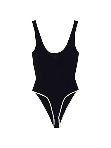 Изящный трикотажный бодисифт с контрастной отделкой и вышивкой 4S на горловине.