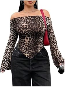 Лонгсливы Y2K, весенние топы для женщин, стильные для выходов, на свидания, для вечеринок и фестивалей. Принт с леопардом, рукав через плечо, рюшкой, асимметричным подолом и приталенным кроем.