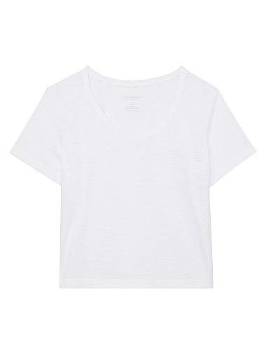 Футболка Kenya изготовлена из фактурного хлопка, имеет расслабленный крой и укороченный силуэт с округлым вырезом. Отлично сочетается с джинсами, под пиджаком или заправленной в макси-юбку.