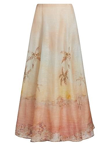 Макси-юбка омбре Illuminate от Zimmermann из льна и шелка с потайной застежкой