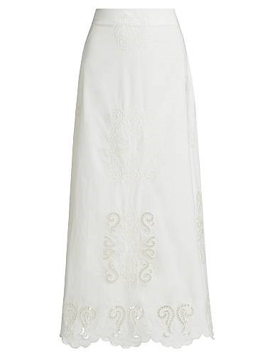 Эта макси-юбка A-силуэта Poppy от Figue выполнена из хлопка и украшена вышитым вырезом.